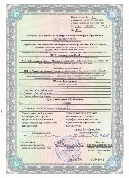 | Адрес местонахождения образовательной организации* | 346141, Россия, Ростовская область, Миллеровский район, сл. Колодези, ул.Советская, 13 |